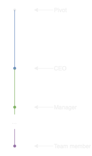The downside is that as a team member, you have a very limited amount of ownership (you know thereโs not much left if I canโt even use straight arrows in the image anymore). There is not much opportunity to truly change the company unless you are at a higher level. Itโs also not possible for a manager to give much more ownership, because their ownership is often rather limited as well.